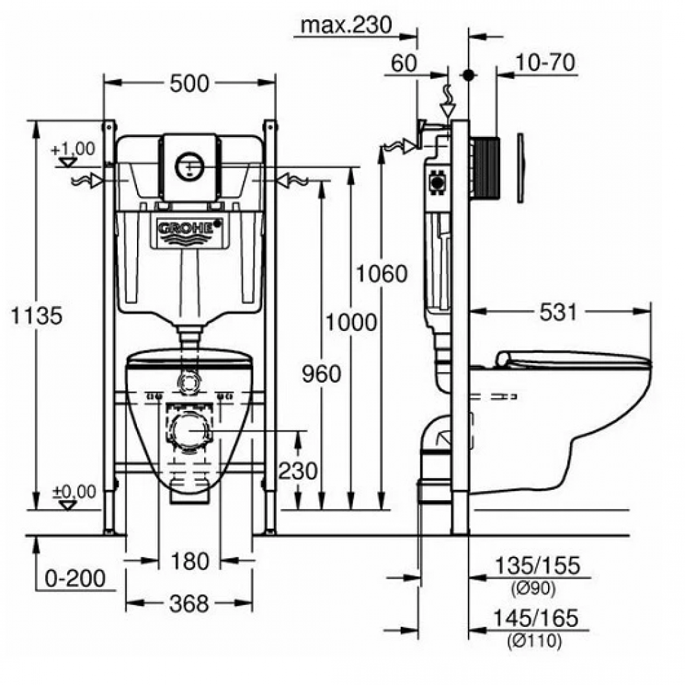 Благодаря подвесной конструкции модель GROHE Bau Ceramic не занимает много места в помещении, а свободное пространство под чашей делает уборку в ванной комнате гораздо легче. Безободковое исполнение позволяет предотвратить скопление бактерий и грязи на внутренней поверхности чаши и обеспечивает ее чистоту и гигиеничность использования. Унитаз выполнен из санфарфора, который обладает повышенной прочностью и устойчивостью к негативным внешним факторам, а также долгое время сохраняет идеальную белизну и не впитывает запахи и грязь.