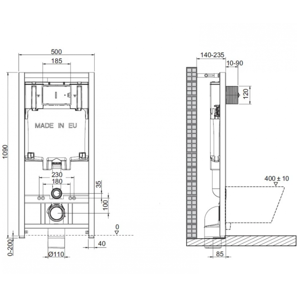 Габариты унитаза | 500(Д)х360(Ш)х400(В) мм |