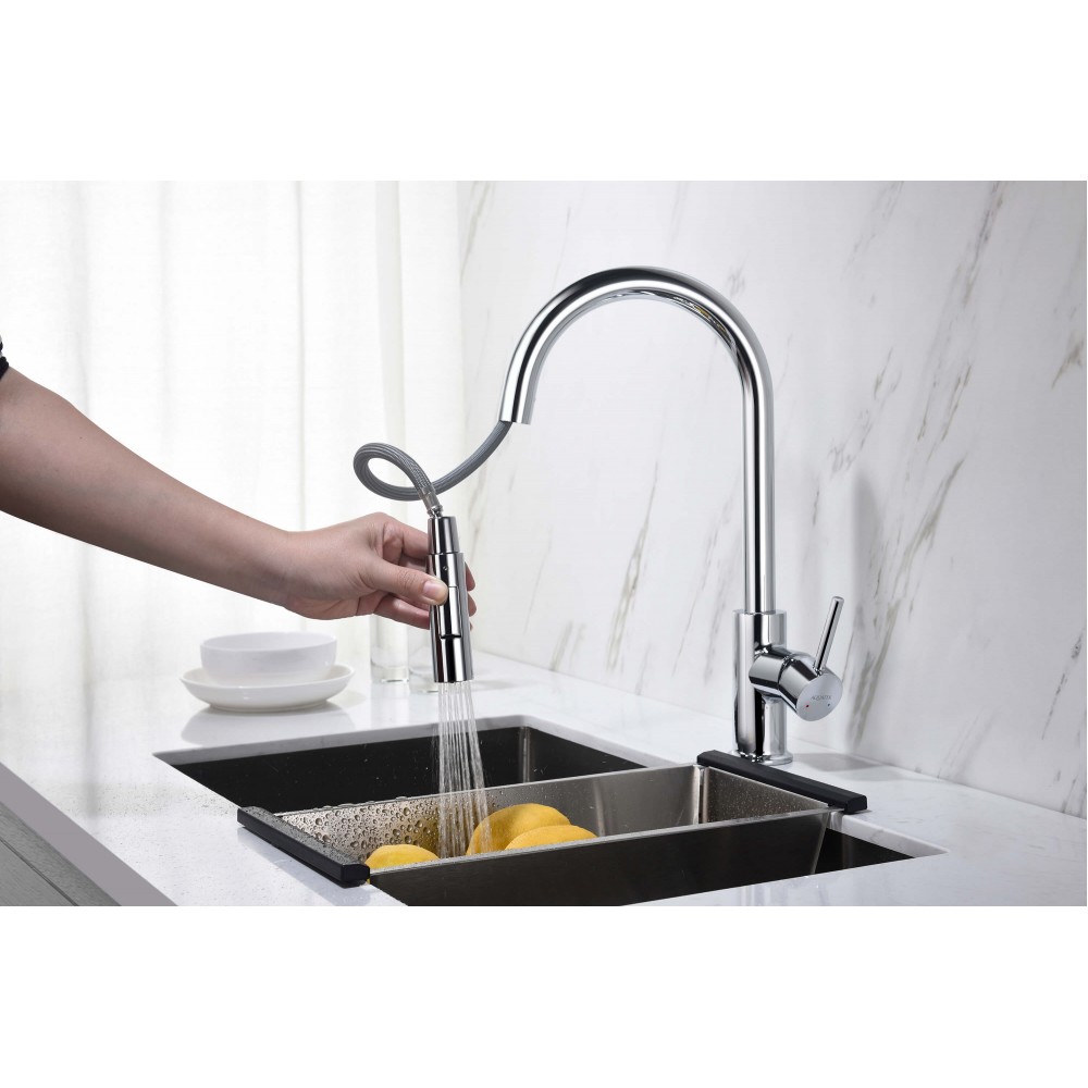 Смеситель для кухни AQUATEK Европа AQ1384CR однорычажный хром оснащен высоким вытяжным изливом, удобен для мытья крупных предметов. Однорычажная система регулировки силы струи и температуры воды. Цельный корпус смесителя снижает вероятность протечек. Оптимальная длинна подводки. Картридж холодного запуска Ecostart (ColdStart). Вертикальная ручка, с уголом поворота 90°. Поворотная головка выдвижного излива на 360 градусов из нержавеющей стали. Магнитный фиксатор вытяжного излива. Аэратор с 2-мя режимами подачи водяной струи. Комплект для быстрой и легкой установки.