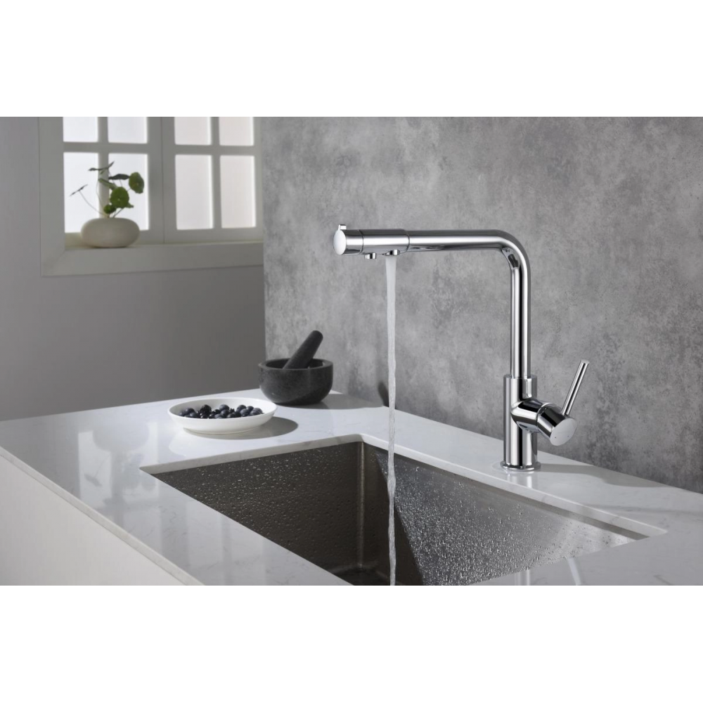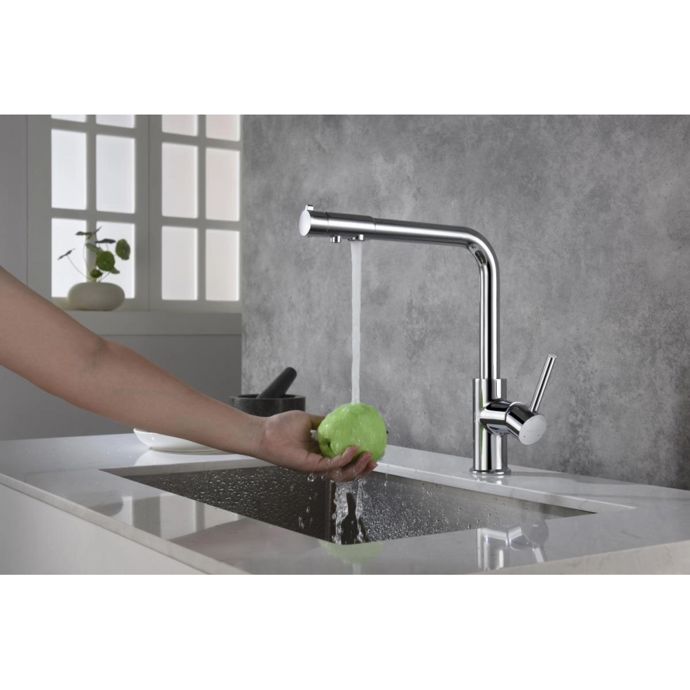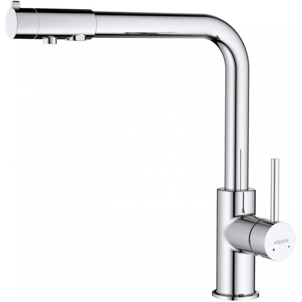 Смеситель для кухни AQUATEK Европа AQ1386CR однорычажный хром оснащен высоким изливом, удобен для мытья крупных предметов. Для подключения фильтра для воды непосредственно к смесителю. Позволяет получать холодную питьевую воду непосредственно из водопровода. Не требует дополнительного отверстия в мойке под фильтр. Однорычажная система регулировки силы струи и температуры воды. Цельный корпус смесителя снижает вероятность протечек. Оптимальная длинна подводки.