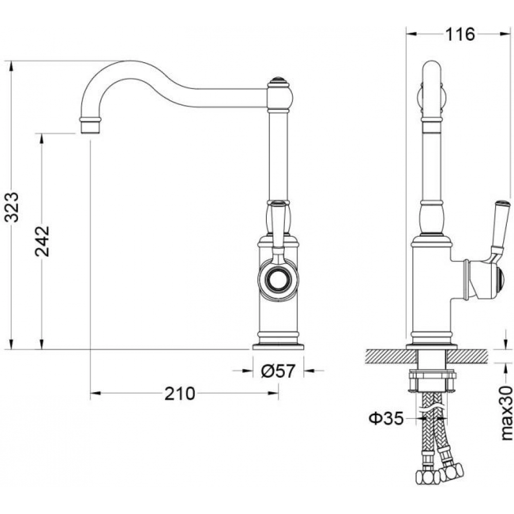Смеситель для кухни AQUATEK Классик AQ1580CR однорычажный хром оснащен высоким изливом, удобен для мытья крупных предметов. Однорычажная система регулировки силы струи и температуры воды. Цельный корпус смесителя снижает вероятность протечек. Оптимальная длинна подводки.