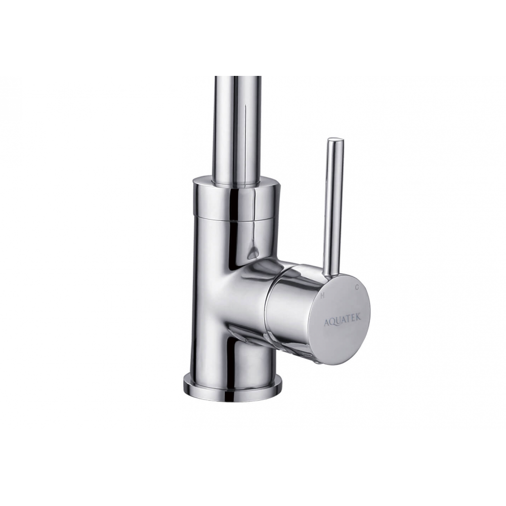 Смеситель для кухни AQUATEK Вега AQ1080CR однорычажный хром оснащен высоким изливом, удобен для мытья крупных предметов. Однорычажная система регулировки силы струи и температуры воды. Цельный корпус смесителя снижает вероятность протечек. Оптимальная длинна подводки.