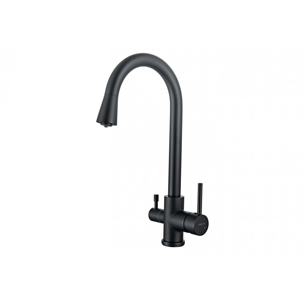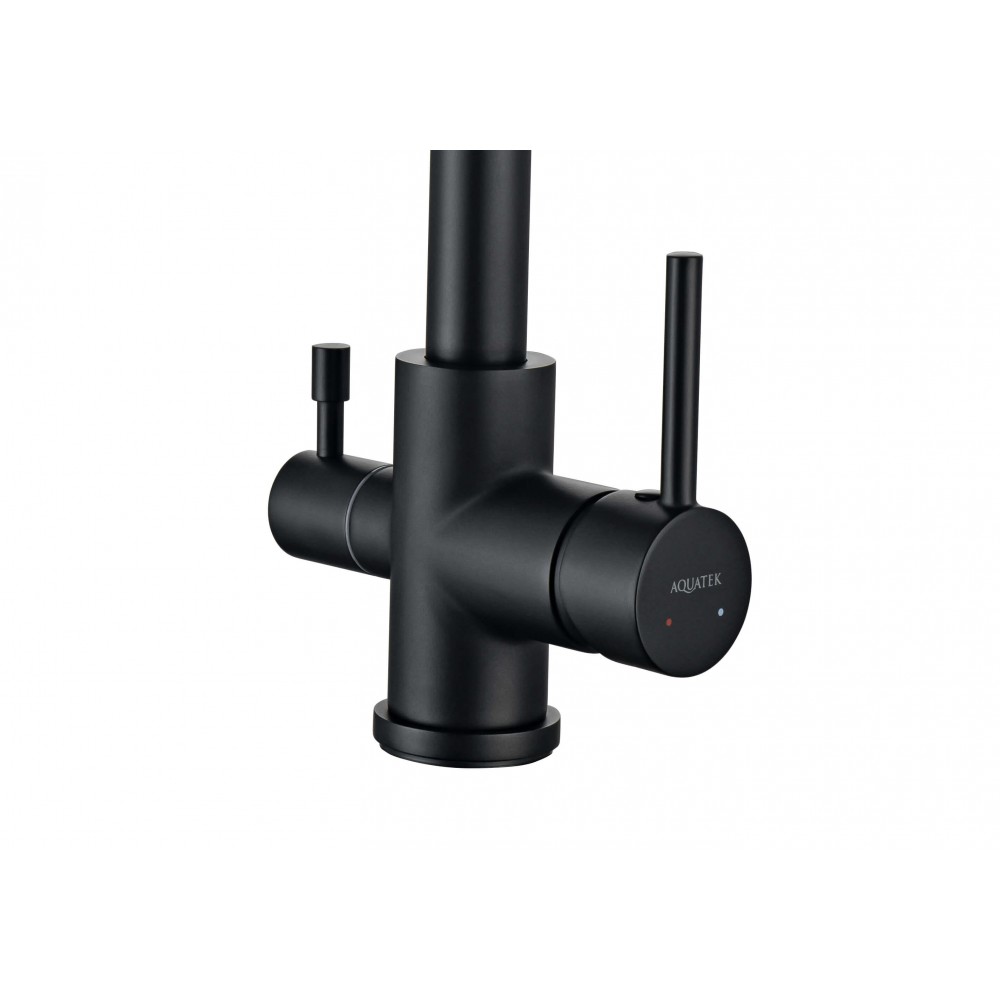 Смеситель для кухни AQUATEK Вега AQ1085MB однорычажный черный матовый оснащен высоким изливом, удобен для мытья крупных предметов. Для подключения фильтра для воды непосредственно к смесителю. Позволяет получать холодную питьевую воду непосредственно из водопровода. Не требует дополнительного отверстия в мойке под фильтр. Однорычажная система регулировки силы струи и температуры воды. Цельный корпус смесителя снижает вероятность протечек. Оптимальная длинна подводки.
