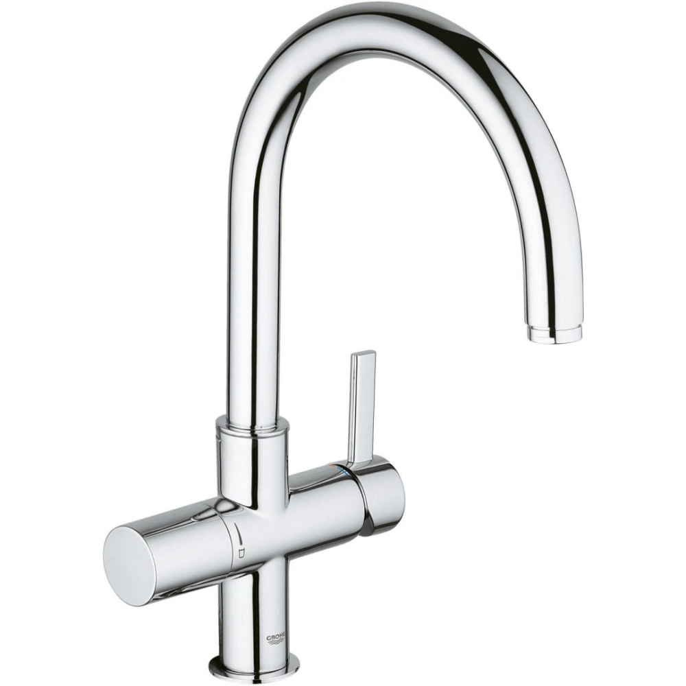 Смеситель для кухни GROHE Blue 33251000 однорычажный хром - инновационный кухонный смеситель, превращающий водопроводную воду в свежую питьевую. Вода — эликсир жизни, она жизненно необходима для здоровья и хорошего самочувствия. Водопроводная вода пригодна для повседневных нужд, но для приготовления пищи и утоления жажды люди всё чаще предпочитают очищенную воду. Помимо обычной водопроводной воды этот смеситель GROHE Blue Pure подает чистую, отфильтрованную воду, пригодную для питья. Система фильтрации GROHE Blue Pure, которая активируется отдельным рычагом для подачи воды, очищает воду от нежелательных примесей, ухудшающих ее вкус и запах, включая хлор и даже тяжелые металлы. Разумеется, данный смеситель также выполняет все функции обычного кухонного смесителя. Высокий удобный излив придает смесителю элегантный вид и позволяет с легкостью наполнять высокие емкости. Технология GROHE SilkMove обеспечивает плавность регулировки напора воды при минимуме усилий. Этот эффектный смеситель для мойки избавит вас от необходимости носить домой тяжелые бутыли с водой. GROHE Blue ® станет незаменимым помощником на Вашей кухне! Вы можете быть уверены в своем выборе!