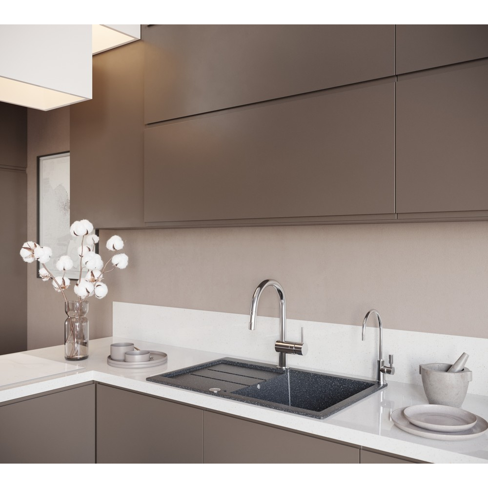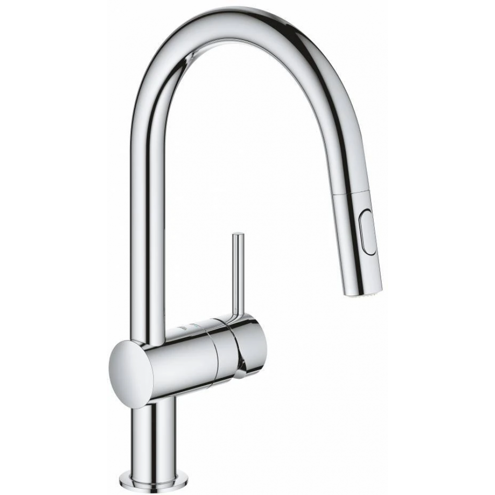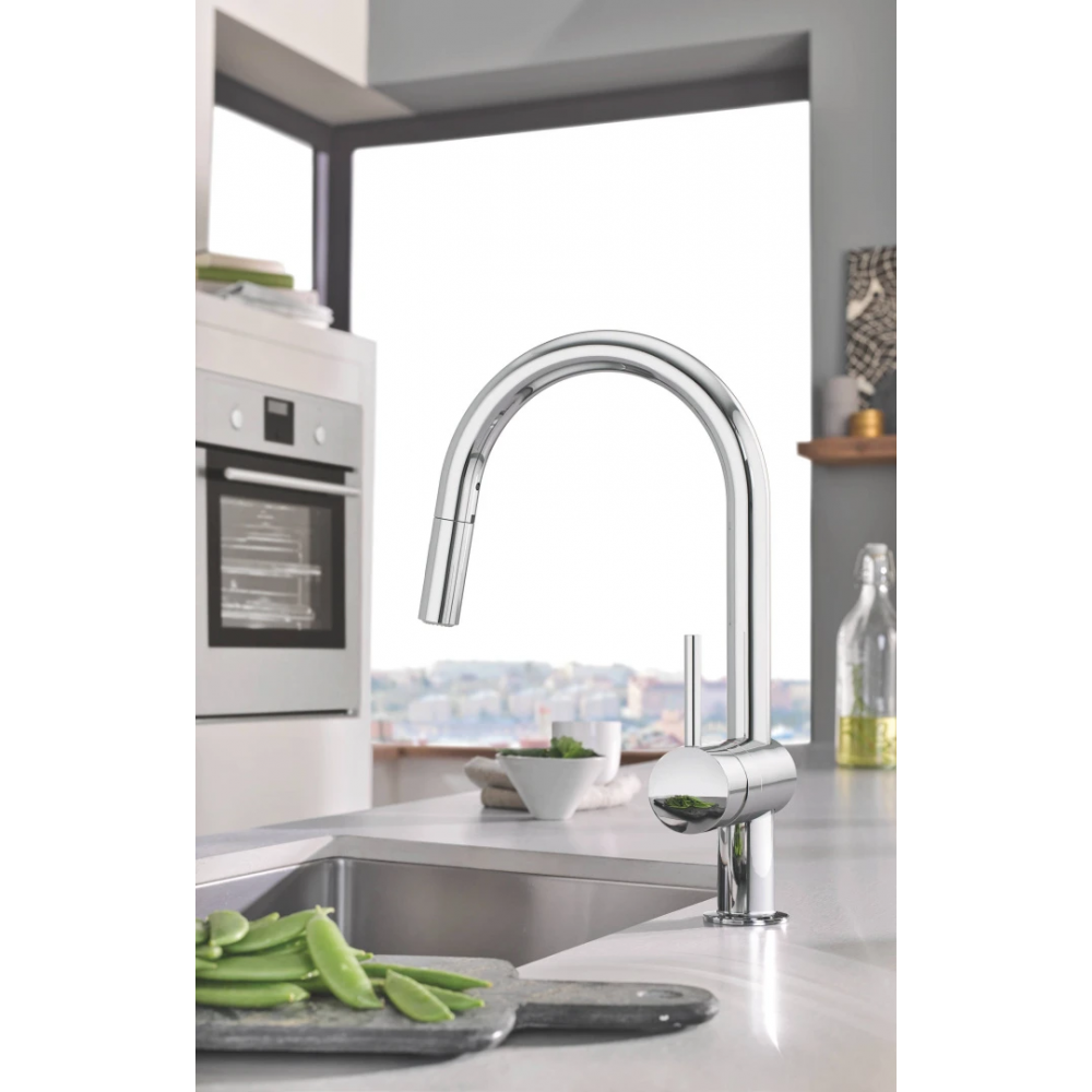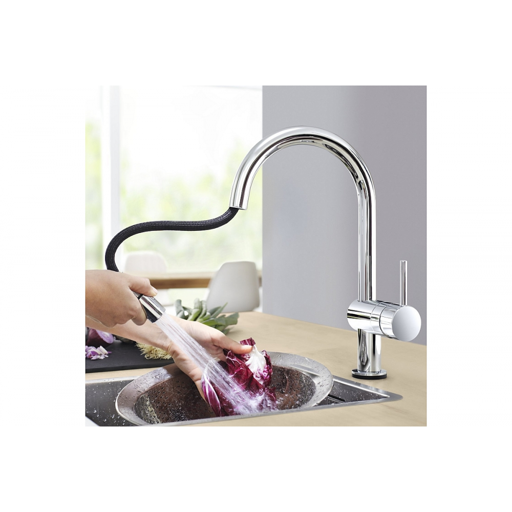 Смеситель для кухни GROHE Minta 32321002 однорычажный хром с дугообразным изливом предназначен для кухонной мойки. Выдвижная душевая лейка, расположенная в изливе, значительно облегчает не только мытье посуды, но и наполнение глубоких емкостей и уборку мойки. Лейка переключается между аэрированным и мощным режимом струи с помощью кнопки на устройстве. Благодаря технологии GROHE EasyDock душевая насадка плавно втягивается в излив. Если у вас две мойки, но смеситель один, благодаря радиусу поворота его излива – 360° – вы с легкостью решите проблему функционирования устройства. Его рычаг плавно и точно регулирует напор и температуру воды. Великолепные эксплуатационные характеристики сочетаются с роскошным внешним видом прибора. Износостойкое фирменное хромированное покрытие не тускнеет со временем, а для ухода достаточно протереть поверхность смесителя мягкой салфеткой.
