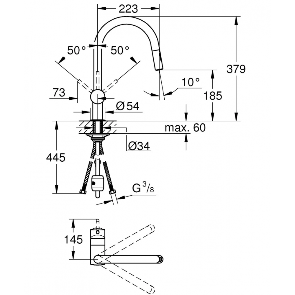 GROHE EasyDock легкое вытягивание и возврат на место выдвижного излив.