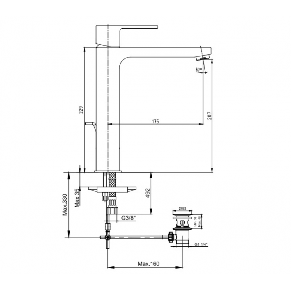 Смеситель неприхотлив в уходе. Конструкция выполнена из качественной латуни, соответствующей всем требованиям безопасности. В смесителе используется керамический картридж, который позволяет плавно регулировать температуру и напор воды. В комплекте смеситель и донный клапан.