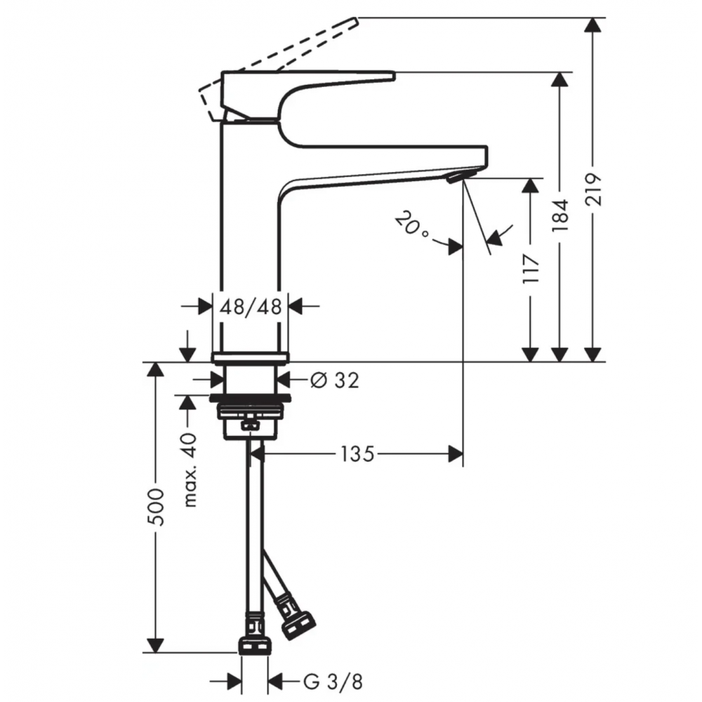 | Длина излива | 135 мм |