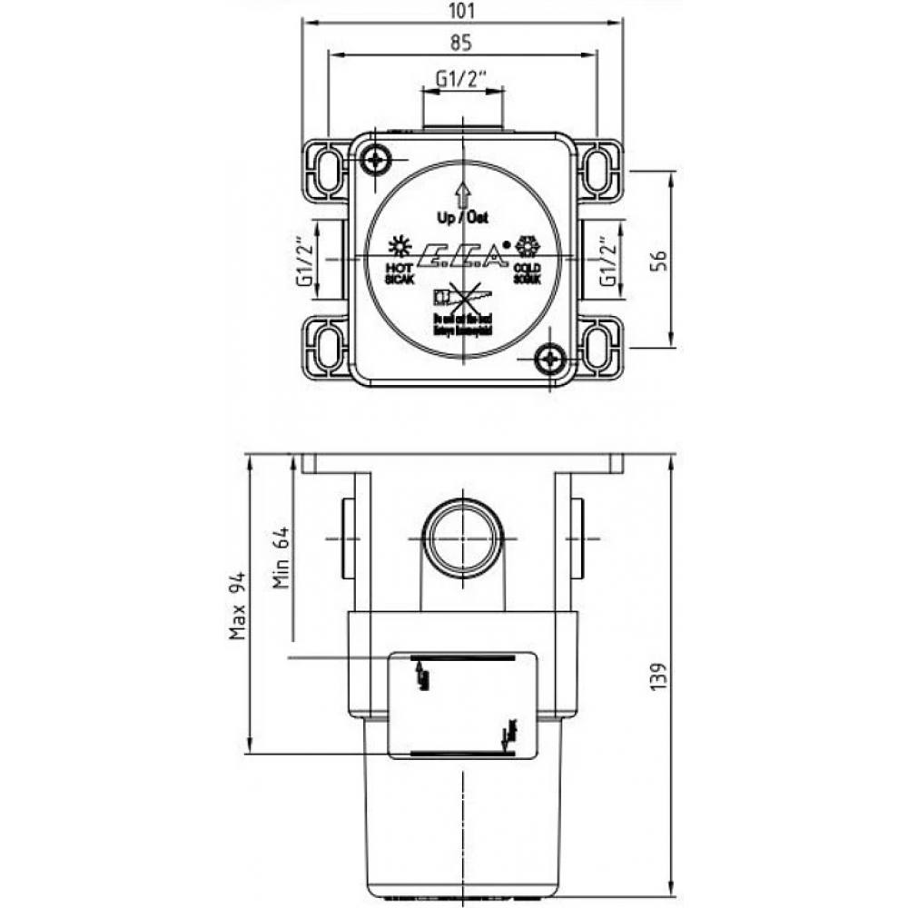 Встраиваемая часть смесителя для душа E.C.A. 102166102EX. Корпус с пластиковым покрытием для скрытого монтажа. Совместимость с пластиковыми и оцинкованными трубами. Подходит для мраморных и гранитных настенных покрытий. Возможность регулировки на 37 мм.