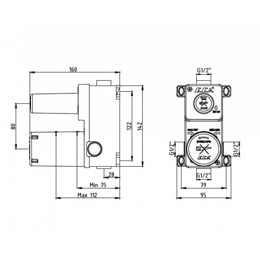 Встраиваемая часть смесителя для ванны E.C.A. 102166201EX на два потребителя.