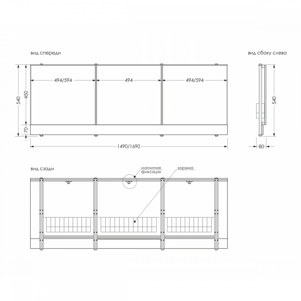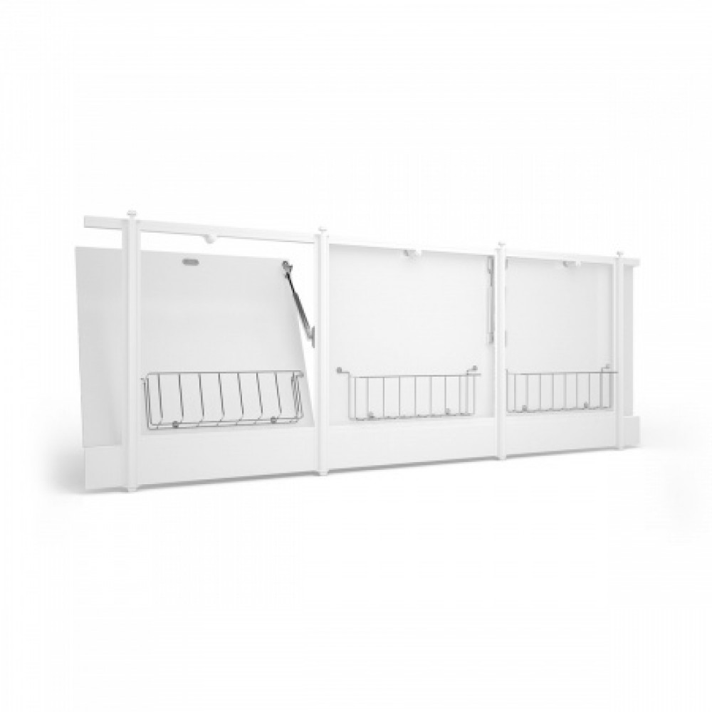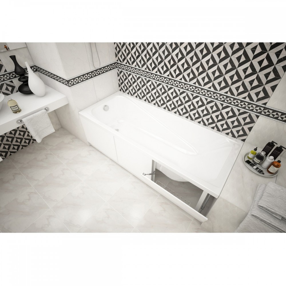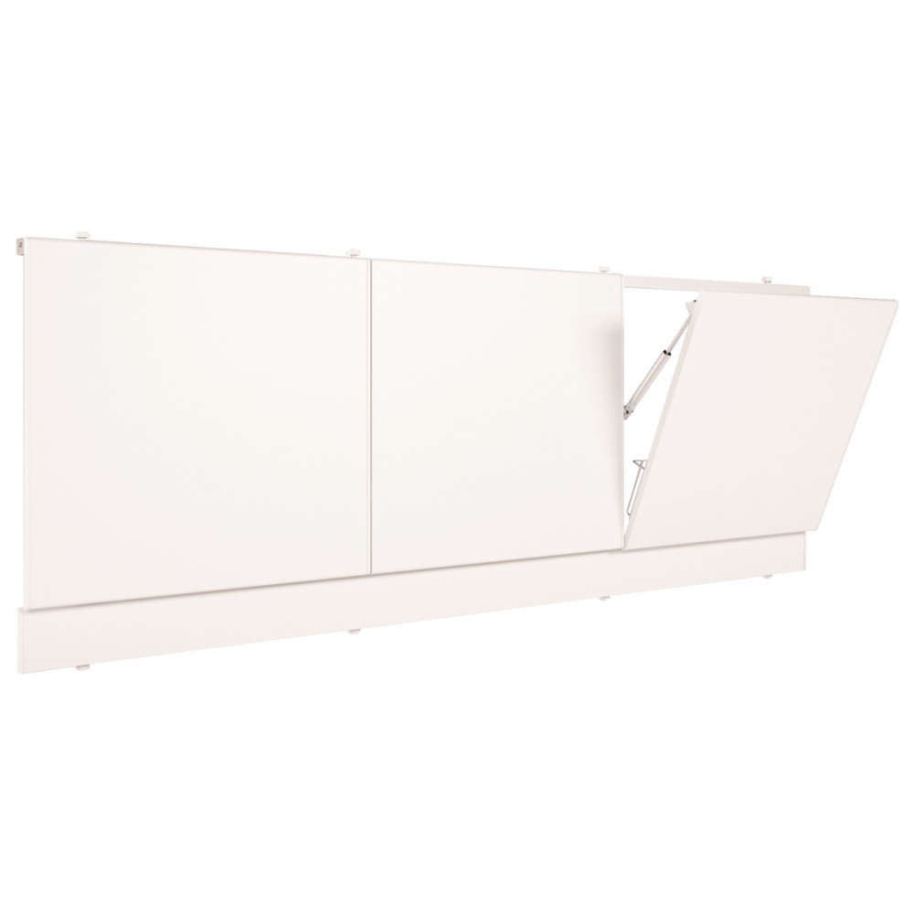 Экран предназначен для монтажа под прямые чугунные, акриловые, стальные ванны длиной 170 см. Имеет откидные дверцы с ящичком из армировочной сетки для хранения порошков/моющих средств.