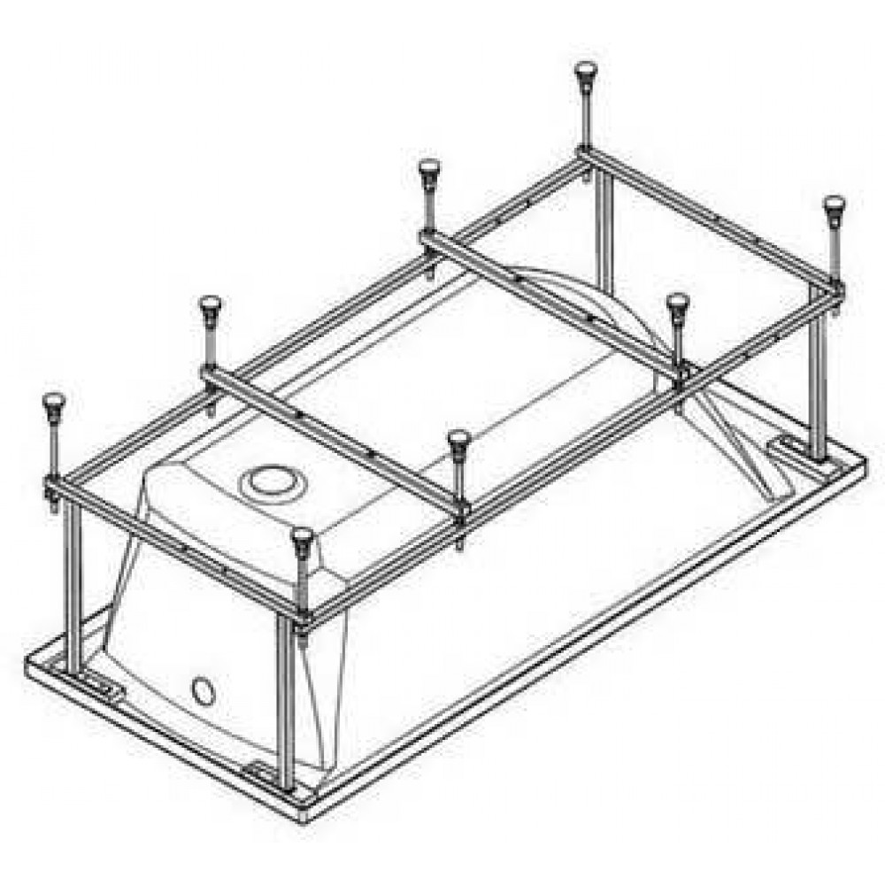 В состав монтажного комплекта входят: каркас на 8 опорах с регулируемыми по высоте ножками, слив-перелив, крепления ванны к стене, крепления фронтальной панели.