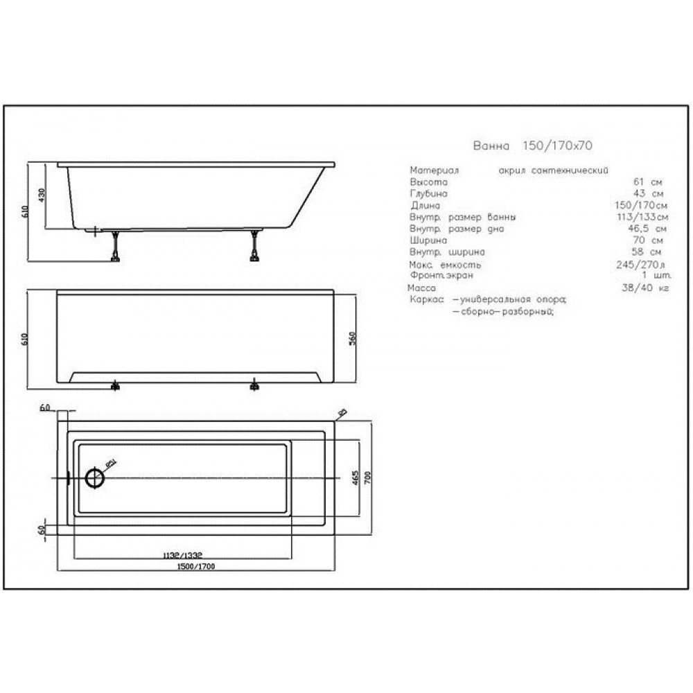 | Ширина | 700 мм |